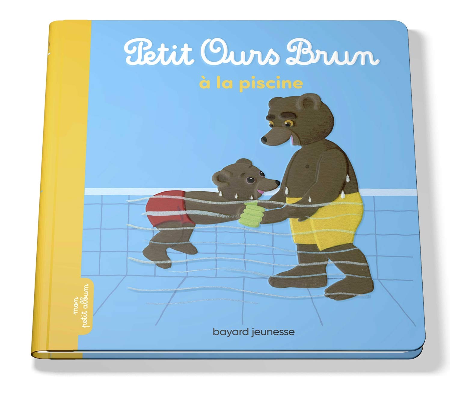| Papa Ours emmène Petit Ours Brun à la piscine. Petit Ours Brun enfile son maillot, prend une petite douche et plouf ! À l'eau ! |